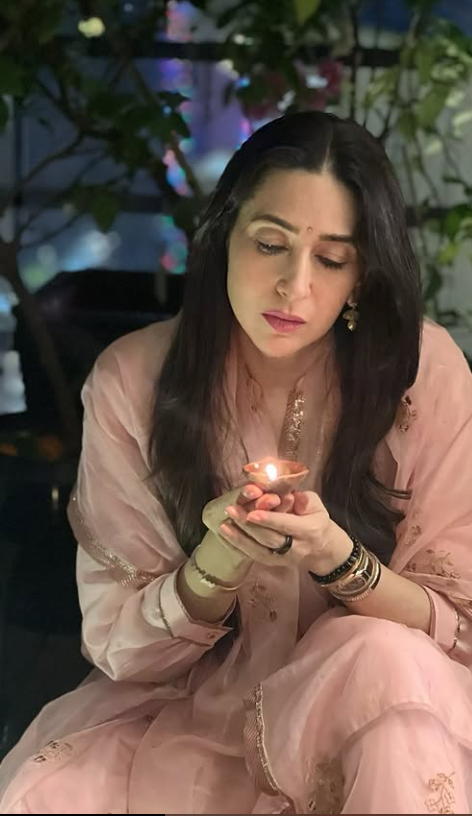 Holding a traditional diya, Karisma's picture was a picture-perfect moment of grace and festive tradition.
